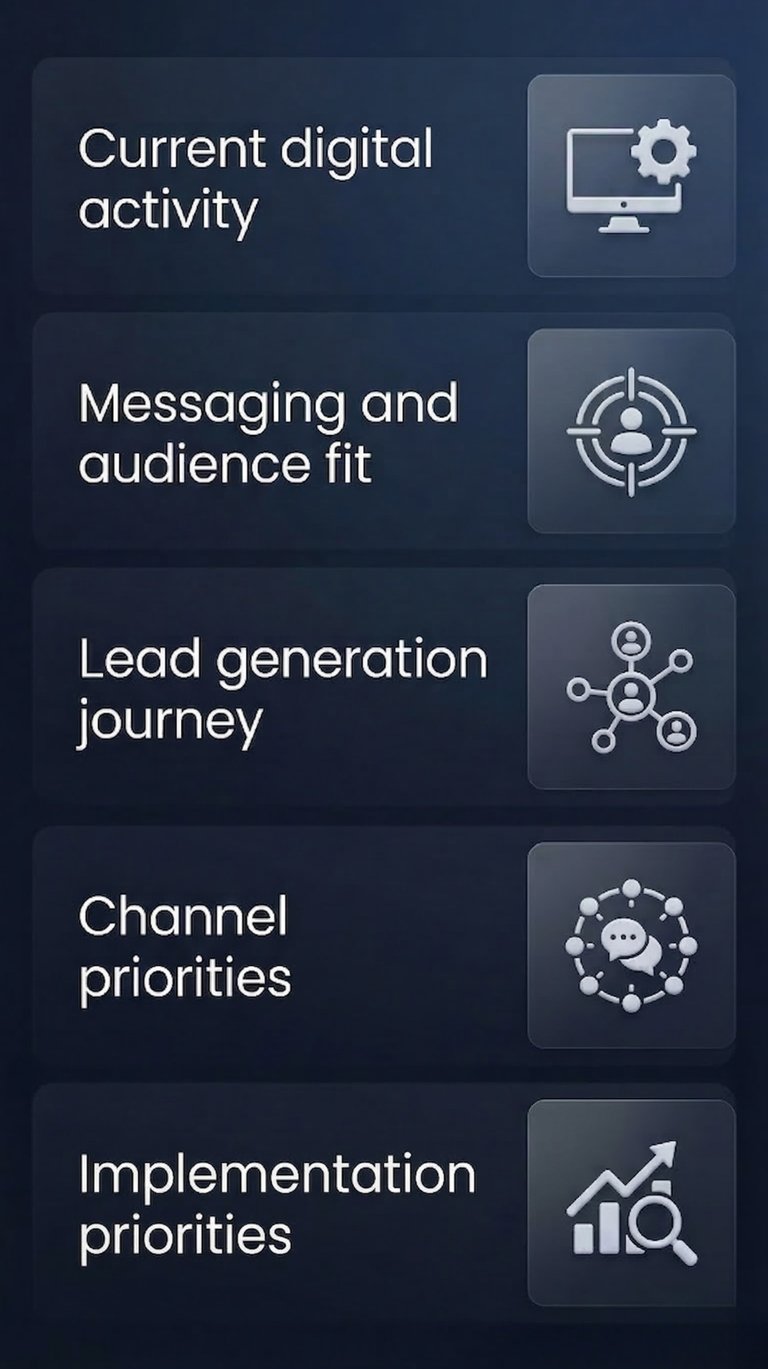 If your marketing feels busy but not always focused, this service helps you step back, assess what is working, and identify where your time and budget will have the most impact.